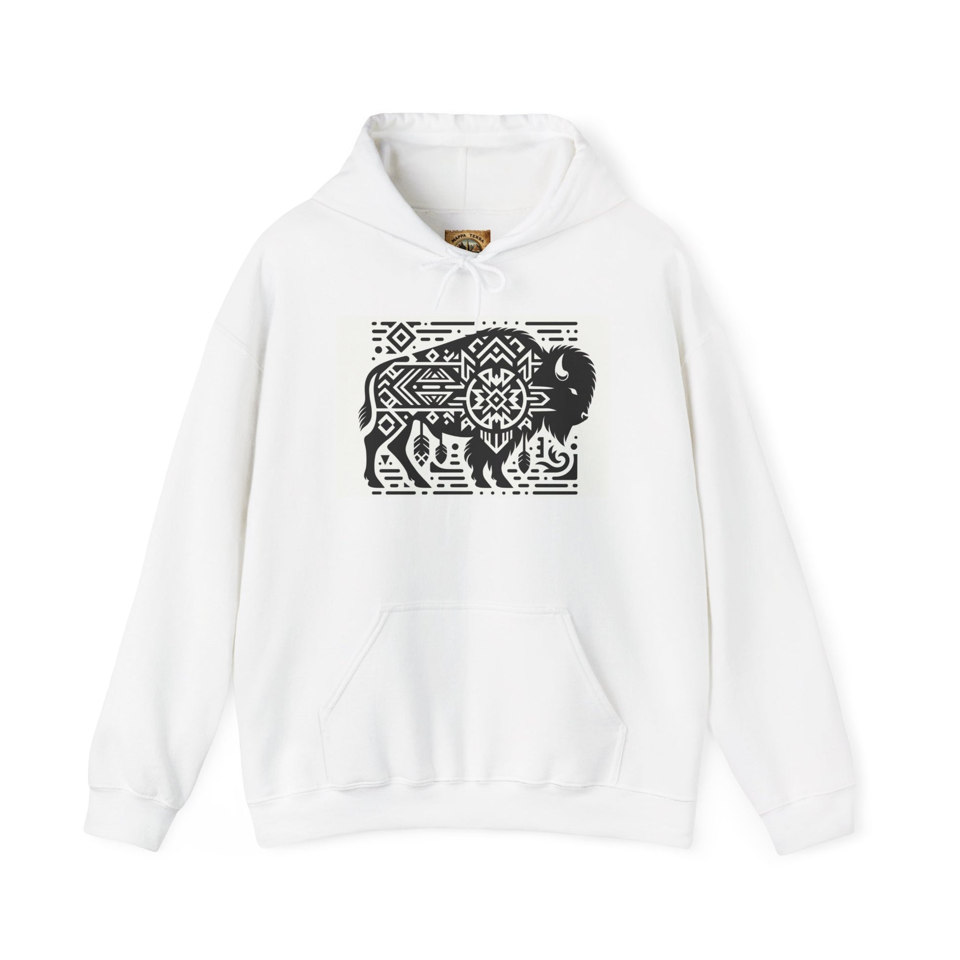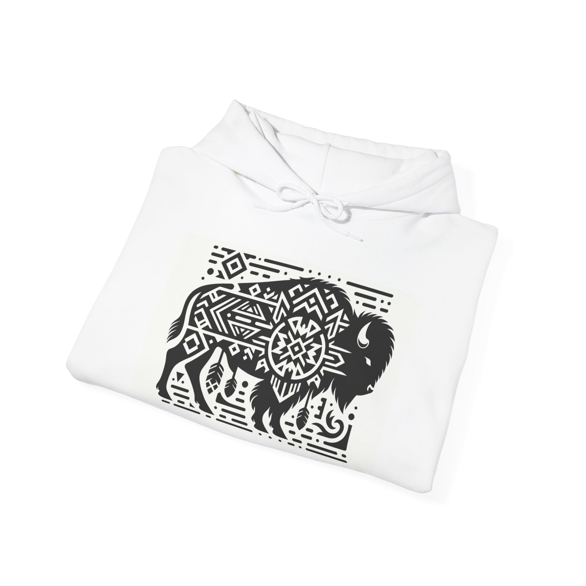 Buffalo Tribal Print Unisex Hooded Sweatshirt, Cozy Casual Wear, Gift for Nature Lovers, Perfect for Fall, Eco-Friendly Fashion