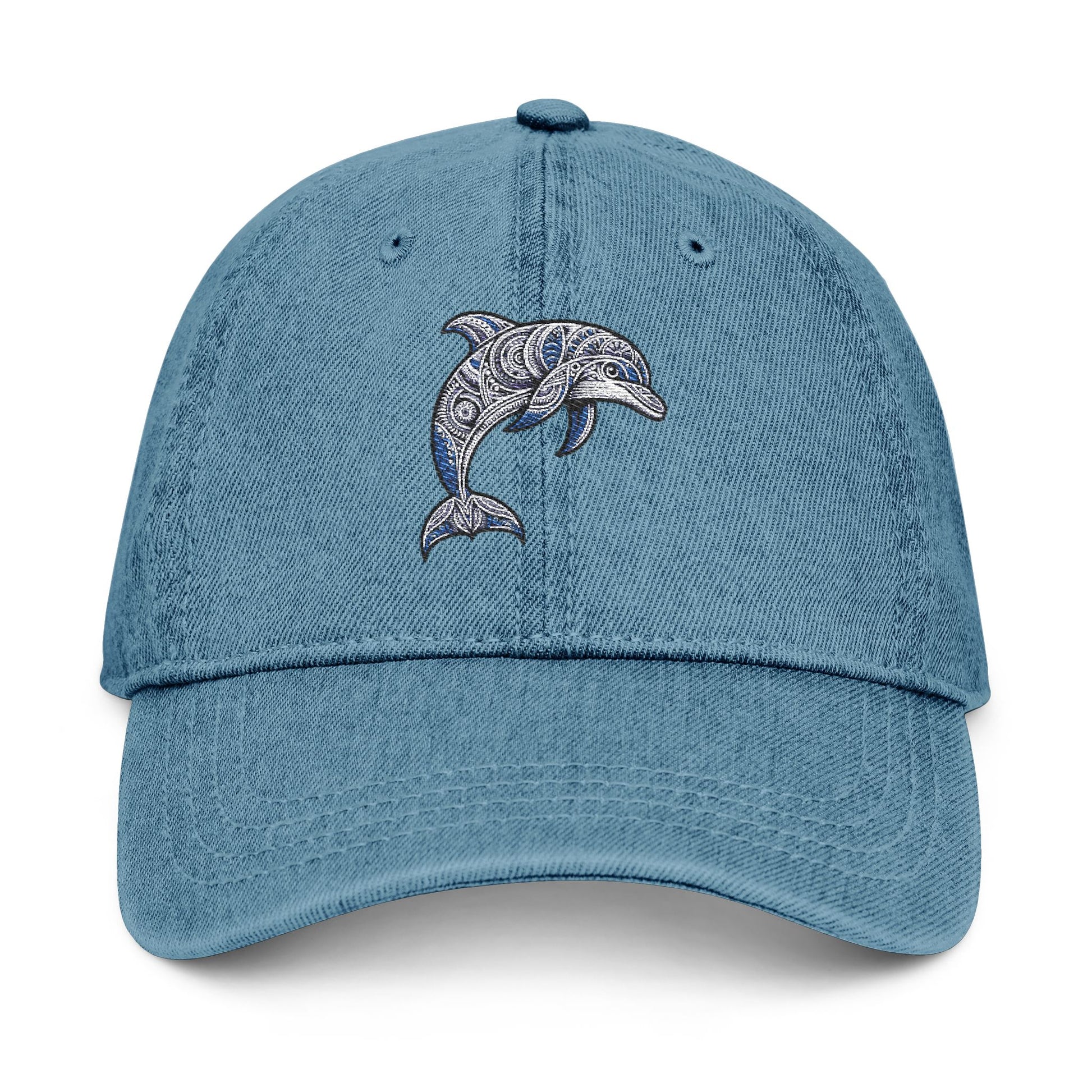 Colorful Embroidered Denim Hat with Tribal Dolphin | Stylish Casual Accessory, Dolphin Lover Gift, Summer Fashion, Unique Dad Hat