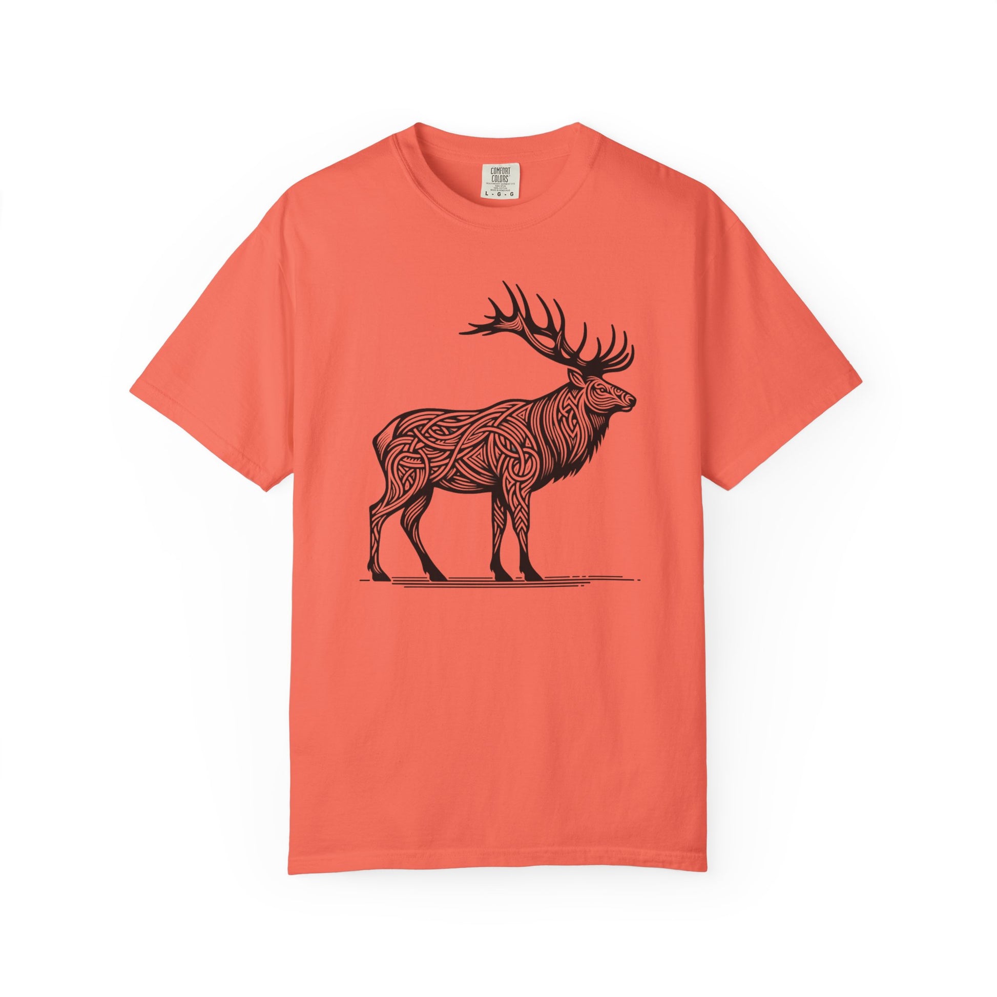 Introducing a vibrant Unisex Garment-Dyed Elk Tattoo Style T-shirt that effortlessly blends style and comfort. This unique shirt features a stunning illustration of a majestic stag on the front, inspired by nature and adventure. It's perfect for anyone who loves the outdoors, making it an ideal choice for hikes, casual outings, or relaxing weekends. The soft, garment-dyed fabric ensures not just a comfy fit but also a laid-back vibe. Whether you're gifting it for a birthday, celebrating nature lovers on Earth Day, or just treating yourself, this tee is a versatile addition to any wardrobe. Available in 58 colors, it allows for personal expression and can be dressed up or down for any occasion.