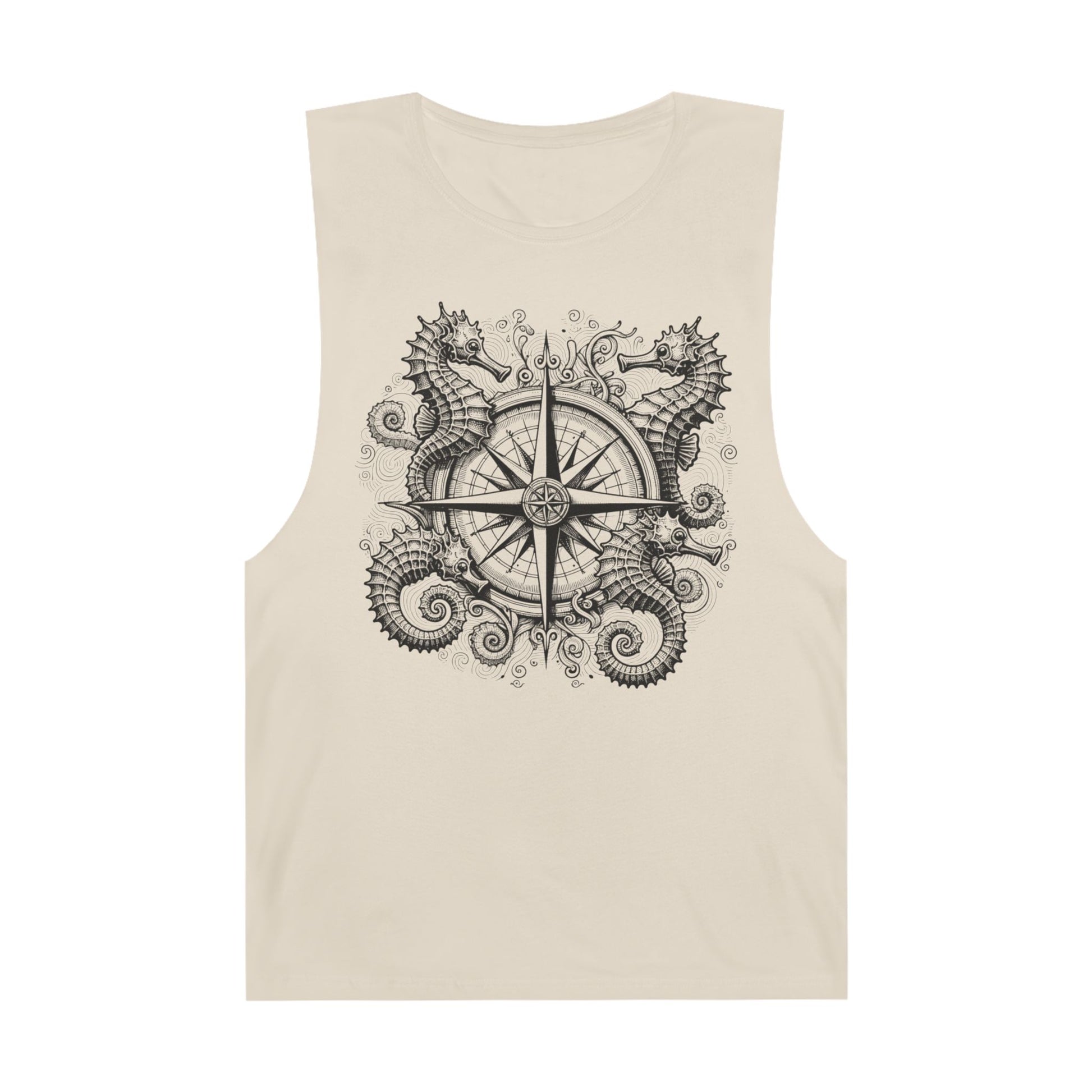 Seahorse Compass Rose Tank with Seahorse design, Bohemian Unisex Top, Nautical Theme Shirt, Summer Casual Wear, Beach Day Outfit, Gift for Adventurers
