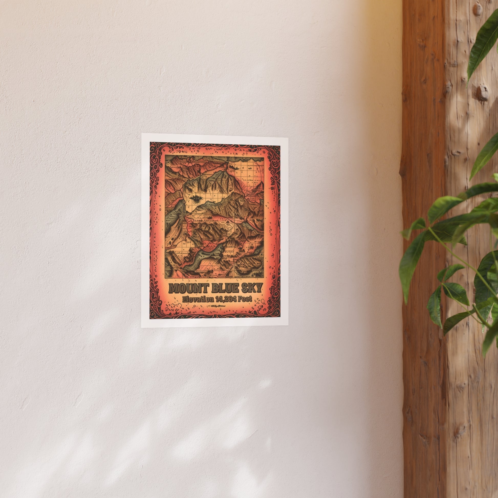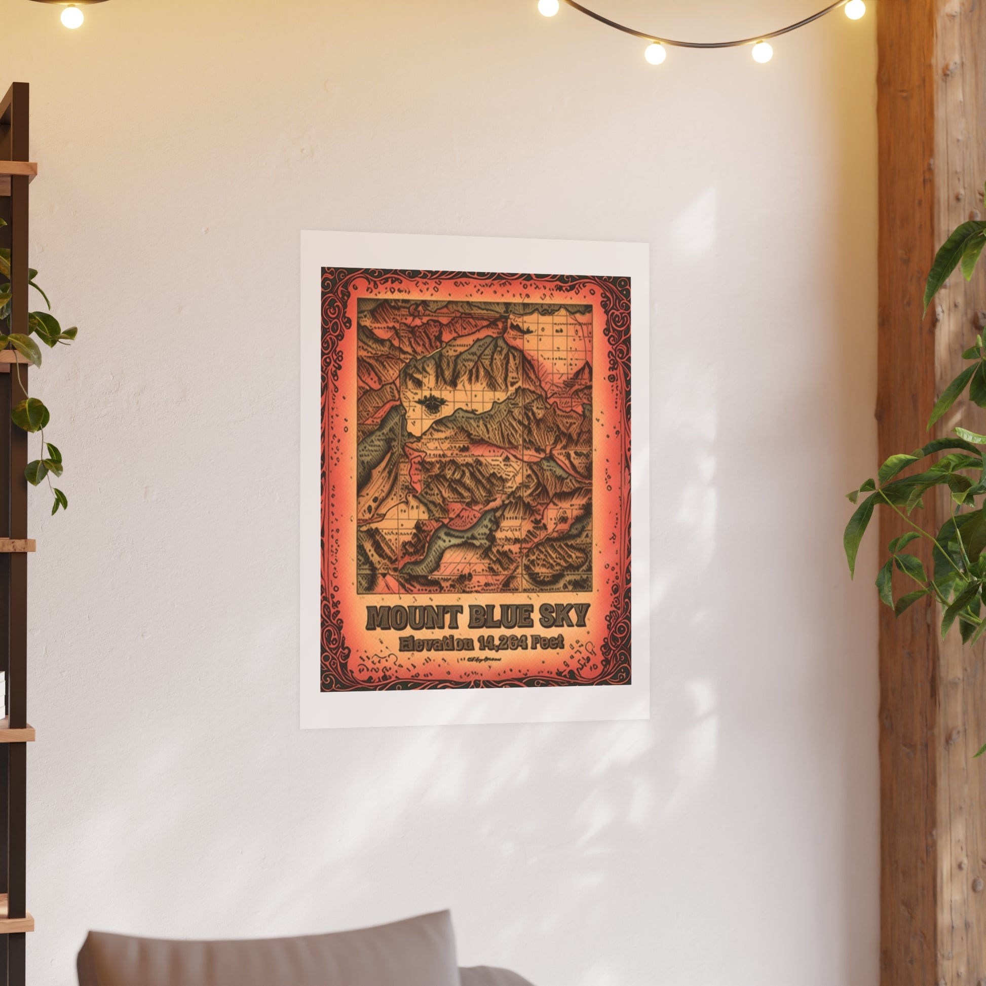 Vintage-Inspired Topographic Satin Poster - Rustic Wall Map Art Mount Blue Sky, Colorado (Formerly Mount Evans)